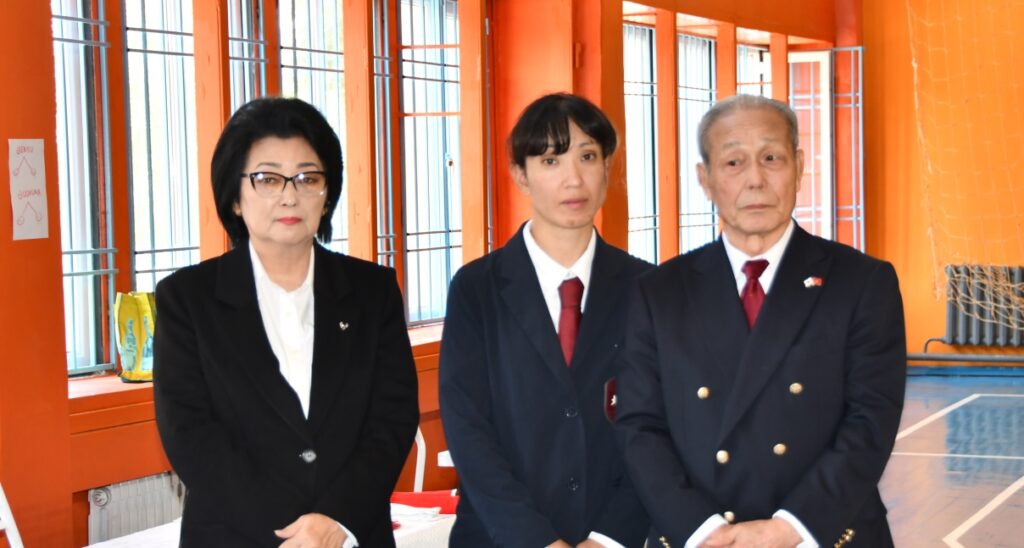 Мелдештин калыстык милдетин кендо боюнча көрүнүктүү чебер, Япониялык киоши (устат), жогорку техникалык деңгээлдеги 7-дандын ээси Эбису Минору мырза аткарды.