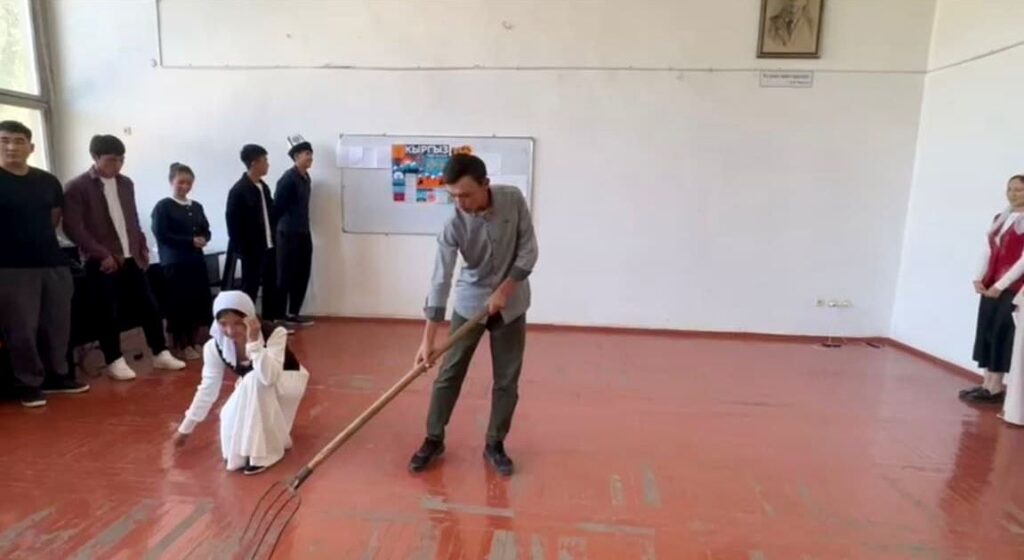 Иш чарага 1-2-курстун студенттери активдүү катышып, кыргыз тилинде көркөм окууларды окуп арасында  өз калемдерине таандык ырларды окушту, комуз күүлөрү жаңырып, комуздун коштоосу менен жагымдуу ырларды ырдашып. Сыймык Бейшекеевдин  “Махабат дастаны” ырына  дүйнөгө таанымал кыргыздын сыймыгы болгон жазуучу Ч.Айтматовдун чыгармаларынан үзүндү сценка аткарышты.