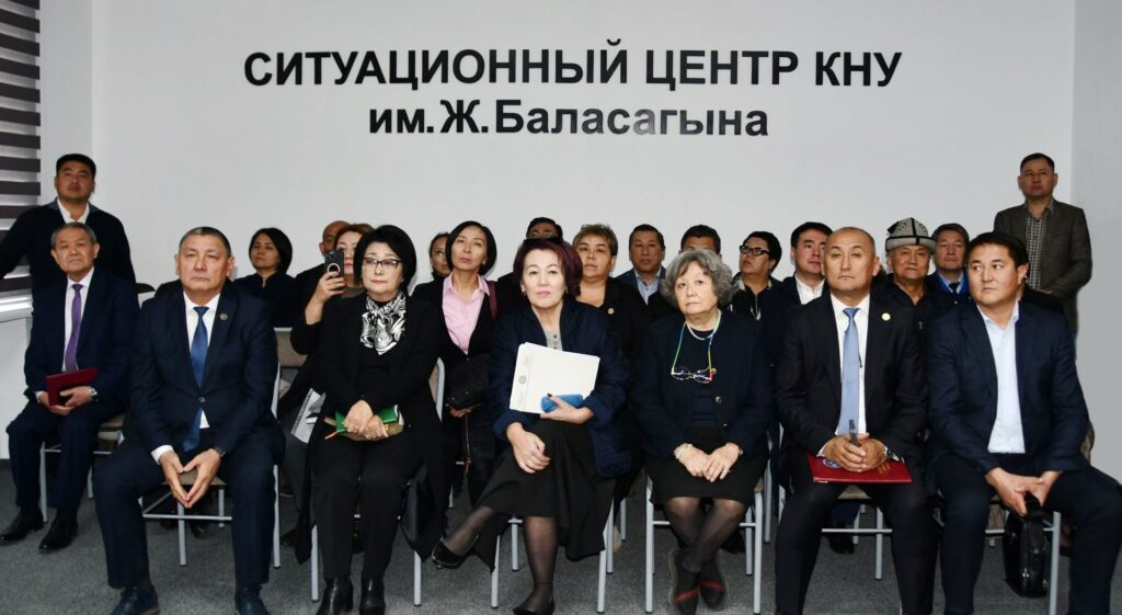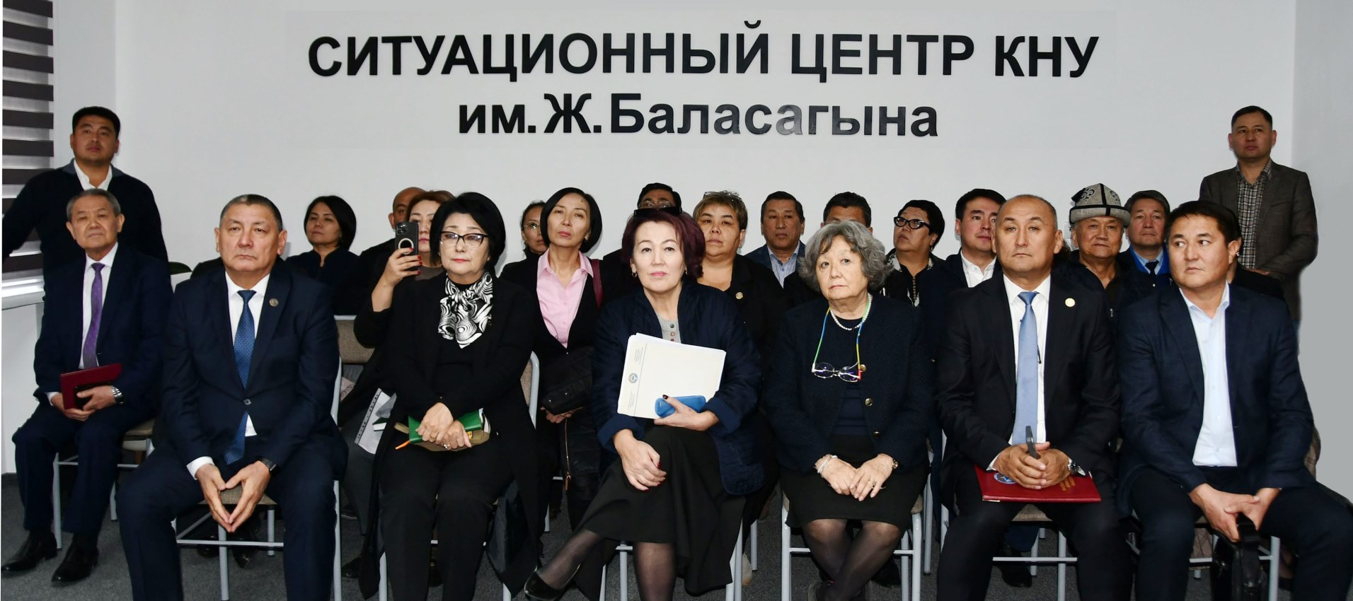 2025-жылдын 22-октябрь күнү Жусуп Баласагын атындагы Кыргыз улуттук университетинин проректорлору жана факультет декандары менен институт директорлору башкы имаратта жайгашкан Кырдаалдык борбордун иши менен таанышты.