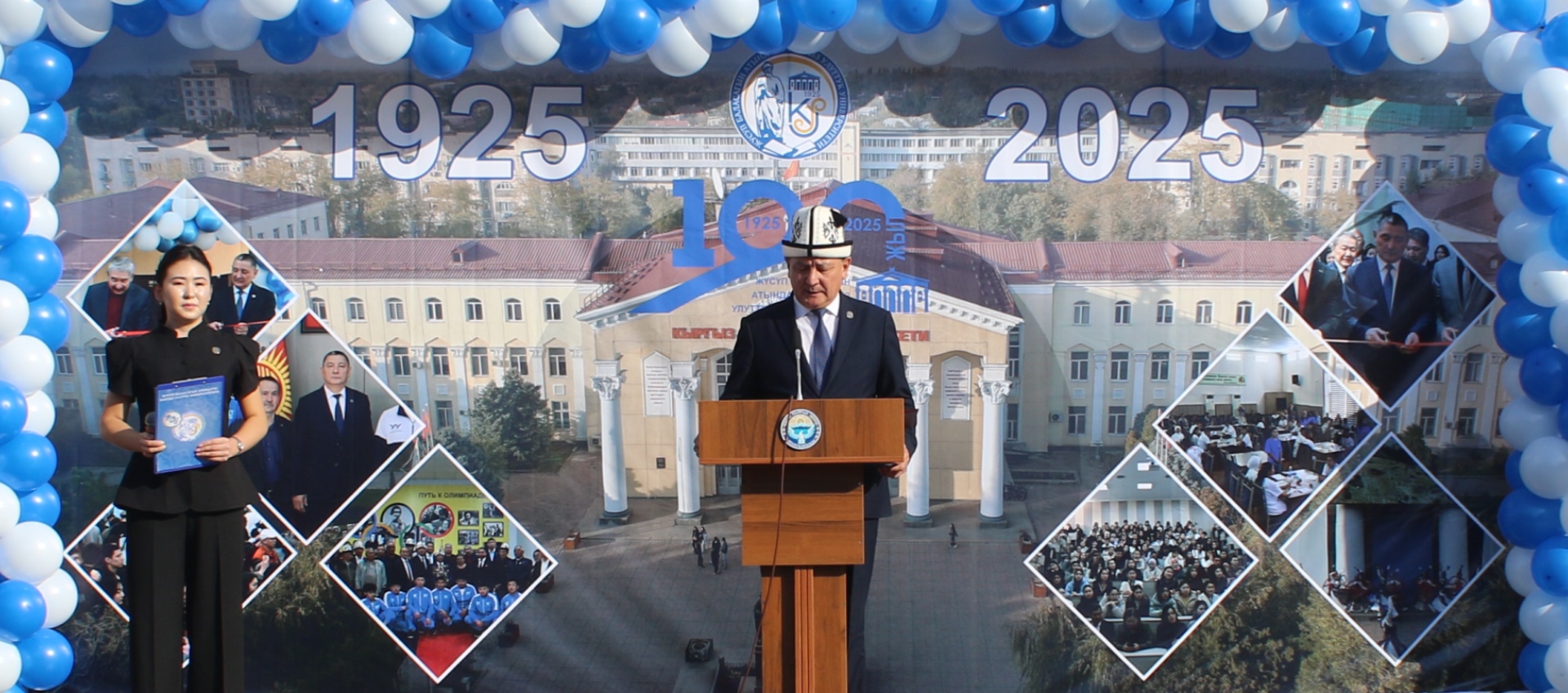 2025-жылдын 23-октябрь күнү эрте менен саат 10.00дө Жусуп Баласагын атындагы Кыргыз улуттук университетинин 100 жылдык мааракесине арналган иш-чаралар башталды. Бул тууралуу КУУнун ректор, профессор Догдурбек Чонтоев башкы имараттын алдындагы аянтчада болгон салтанаттуу жыйында жарыя кылды.