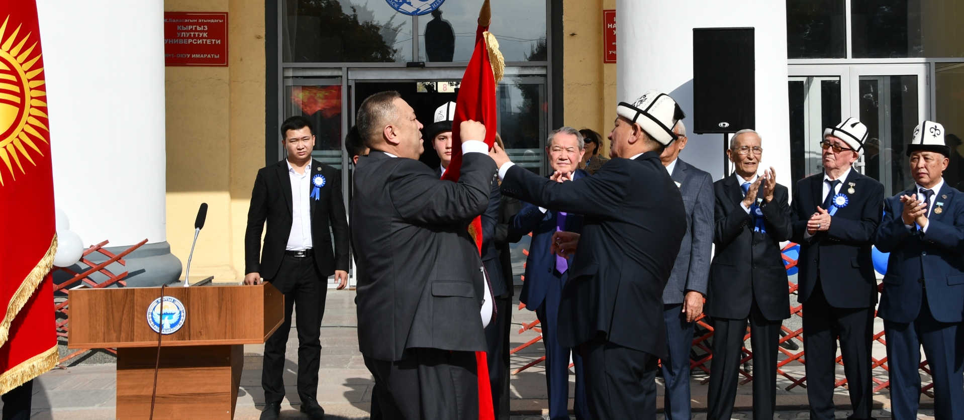 Салтанаттуу иш-чара аяктаган соң, атайын акция уюштурулуп, III даражадагы “Манас” ордени Жусуп Баласагын атындагы Кыргыз улуттук университетинин туусуна тагылды.