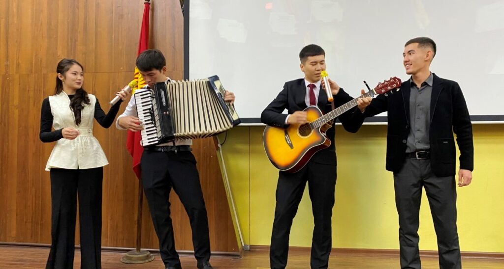 - Студенттер достукка, жаштыкка жана университетке болгон сүйүүгө арналган музыкалык номерлерди аткарышты.