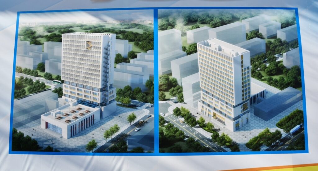 Азыркы тапта курулуш 9-кабатка көтөрүлүп, жумуш кызуу жүрүүдө. Ректор имаратты куруп жаткан “Бай Таш” компаниясынын өкүлдөрү менен жолугуп, учурдагы жана мындан аркы жасалуучу иштер тууралуу пикир алмашты.