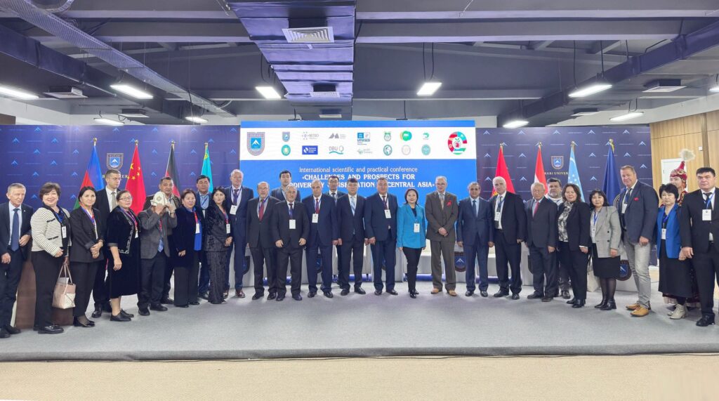 2025-жылдын 6-8-ноябрында География, экология жана туризм факультетинин доценттери: Т.А.Супатаев, Т.А.Торобекова жана Р.Б.Осмонбекова Аль-Фараби атындагы Казак улуттук университетинин география жана жаратылышты пайдалануу, биология жана биотехнология факультеттери уюштурган “Борбордук Азияда биологиялык ар түрдүүлүктү сактоонун көйгөйлөрү жана келечеги” аттуу эл аралык илимий-практикалык конференцияга катышып келишти. Иш-чарага о.э. Биология факультетинен Б.К.Кадырова менен Б.К.Шаршеева онлайн форматта катышты.