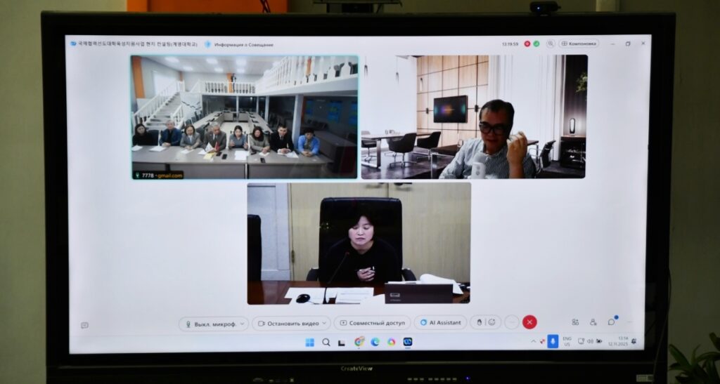 2025-жылдын 12-ноябрында КУУнун Эл аралык кызматташуу жана байланыш боюнча департаменти менен Компьютердик технологиялар жана жасалма интеллект институтунун кызматкелери Түштүк Кореянын Билим берүү министрлигинин алдындагы Улуттук изилдөөчү фонддун өкүлдөрү менен онлайн жолугушуу өткөрдү.