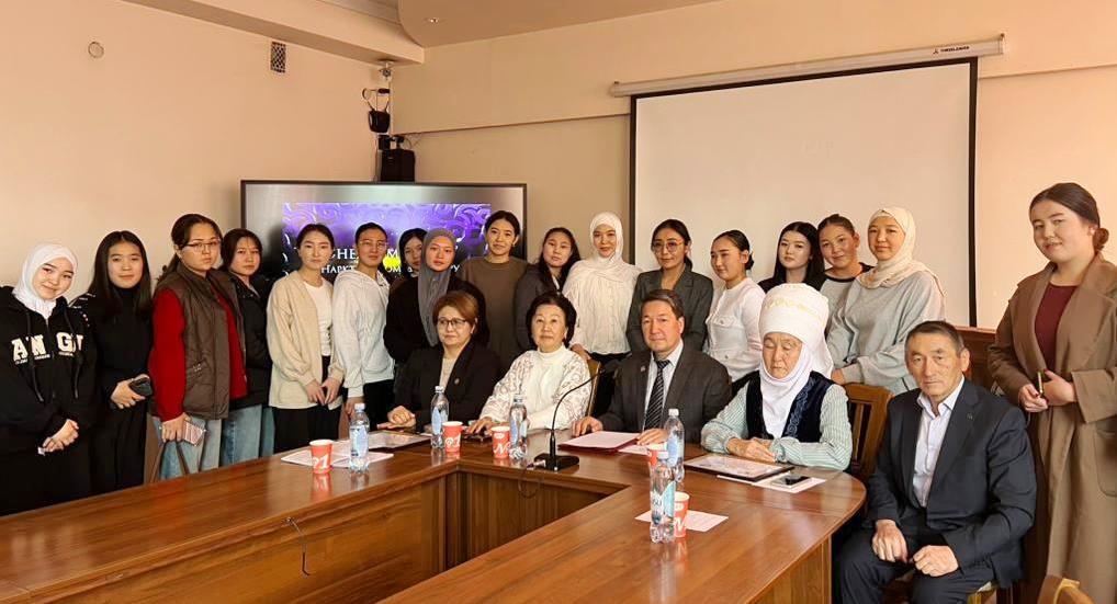 Факультет деканы Бактыбек Жайлообаев иш-чараны ачып, омоктуу ойлору менен бөлүшүп өттү. Кадырлуу коноктор проф. К.Иманалиев атындагы ФББТжП кафедрасынын доценти, п.и.к. Сарылбекова З. “Улуттук дем – дүйнөлүк бийиктик” уңгужолунун 7 багыты, о.э. энелер мектебинин насаатчысы Искакова Ж. Т. “Улуттук нарк, баалуулуктарды ыйык тутуу”, “Кыз адеби – кымбат” деген темаларда өз улутубузду өзгө улуттан өзгөчөлөп, обочолоп турган, бүтүндүгүбүздү туюндурган улуу наркыбыз туурасында аба-суудай керектүү маалымат, асыл ойлору менен бөлүшүштү.
