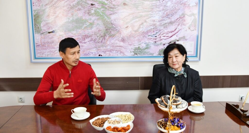 Ректор жылуу баарлашууда агартууга, кыргыз тилинин өнүгүшүнө салым кошкон сыймыктуу инсандардын уул-кыздары менен жолугушуп жатканына абдан кубанычта экенин, Улуттук университеттин 100 жылдыгына карата демилгеленген «100 жылдыкка -100 кабинет» долбоорунун алкагында ачылган кабинеттерге жеке демилгечи болгондоруна ыраазычылыгын билдирди.