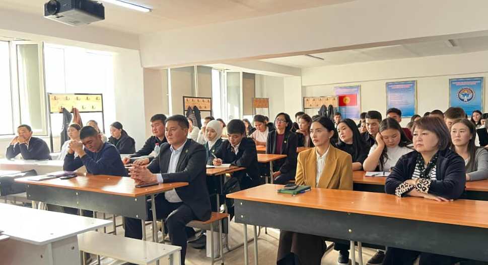 Студенттердин көңүлү Кыргыз Республикасынын негизги символдорунун бири болгон мамлекеттик тилге бурулду. Лекцияда ар бир кыргызстандыктын коомдук жашоонун бардык чөйрөлөрүндө мамлекеттик тилди өнүктүрүүнү жана ырааттуу колдонууну камсыз кылуу жоопкерчилиги баса белгиленди. Лекцияда ошондой эле мамлекеттик тилдин коомдук биримдикти, коомдук гармонияны жана туруктуу өнүгүүнү сактоонун жана чыңдоонун, ошондой эле кыргыз элинин баалуулуктарын, үрп-адаттарын жана каада-салттарын сактоонун негизги булагы катары мааниси баса белгиленди. Факультеттин студенттери талкууга кунт коюп жана чоң кызыгуу менен катышышты.