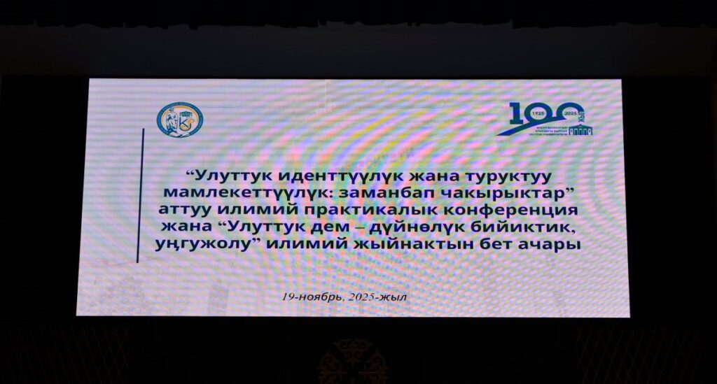 2025-жылдын 19-ноябрь күнү Жусуп Баласагын атындагы Кыргыз улуттук университетинде Бүткүл дүйнөлүк илим күнүнө арналган “Улуттук иденттүүлүк жана туруктуу мамлекеттүүлүк: заманбап чакырыктар” аттуу илимий-практикалык конференция жана «“Улуттук дем – дүйнөлүк бийиктик” уӊгужолу» илимий жыйнагынын бет ачары болду.