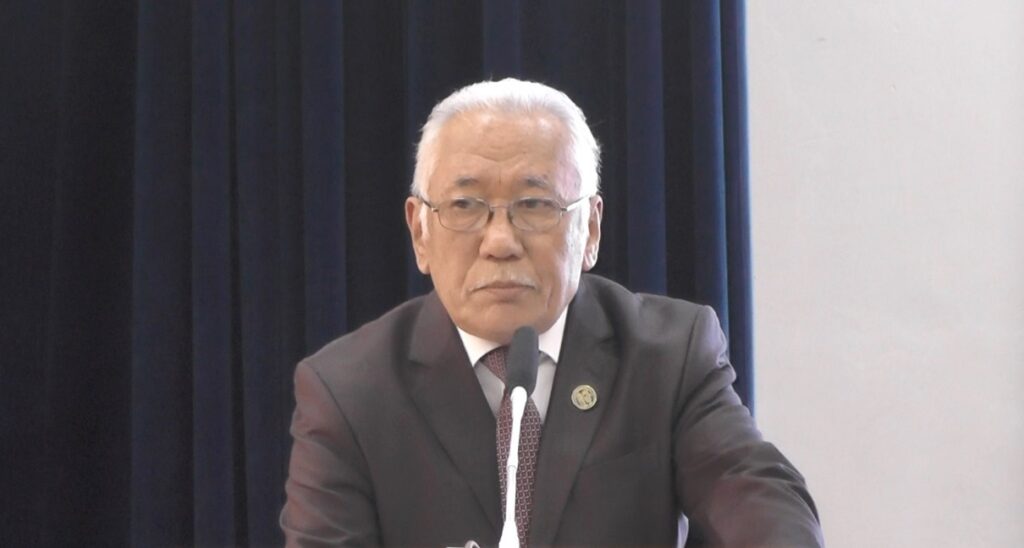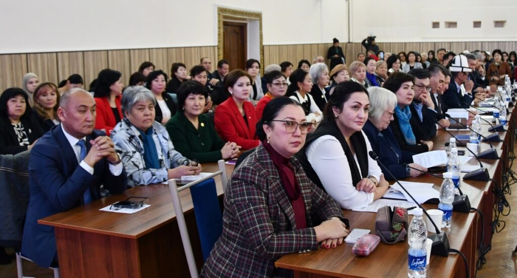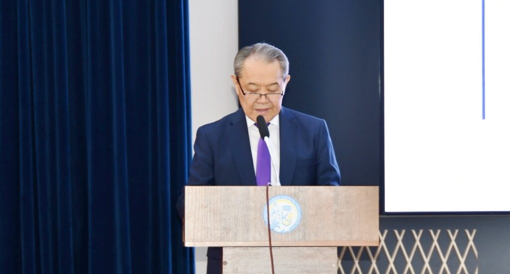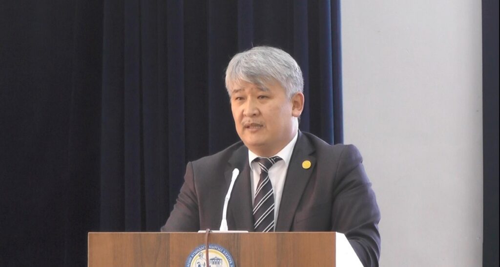 Жыйындын модераторлук милдетин мамлекеттик тил жана тил саясаты боюнча проректор Назаркул Ишекеев аткарды.