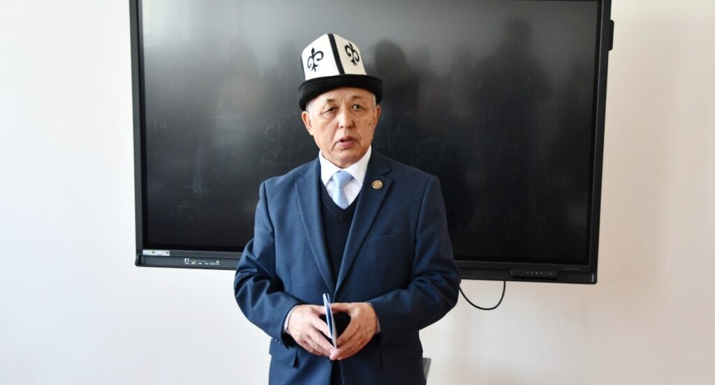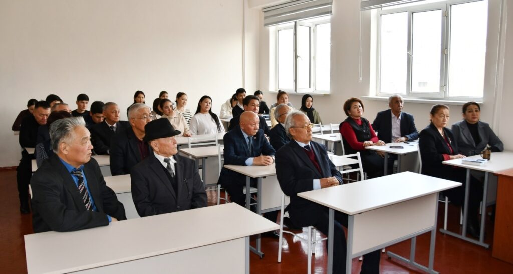 Салтанаттуу жыйынды көрүнүктүү педагог жана устат Мухтар Борбугуловдун шакирти, Улуттук университеттин Аксакалдар кеңешинин төрагасы, филол. и.д., профессор Садык АЛАХАН алып барды.