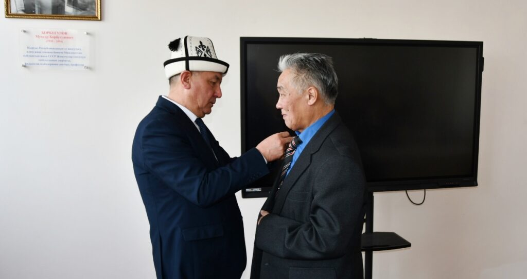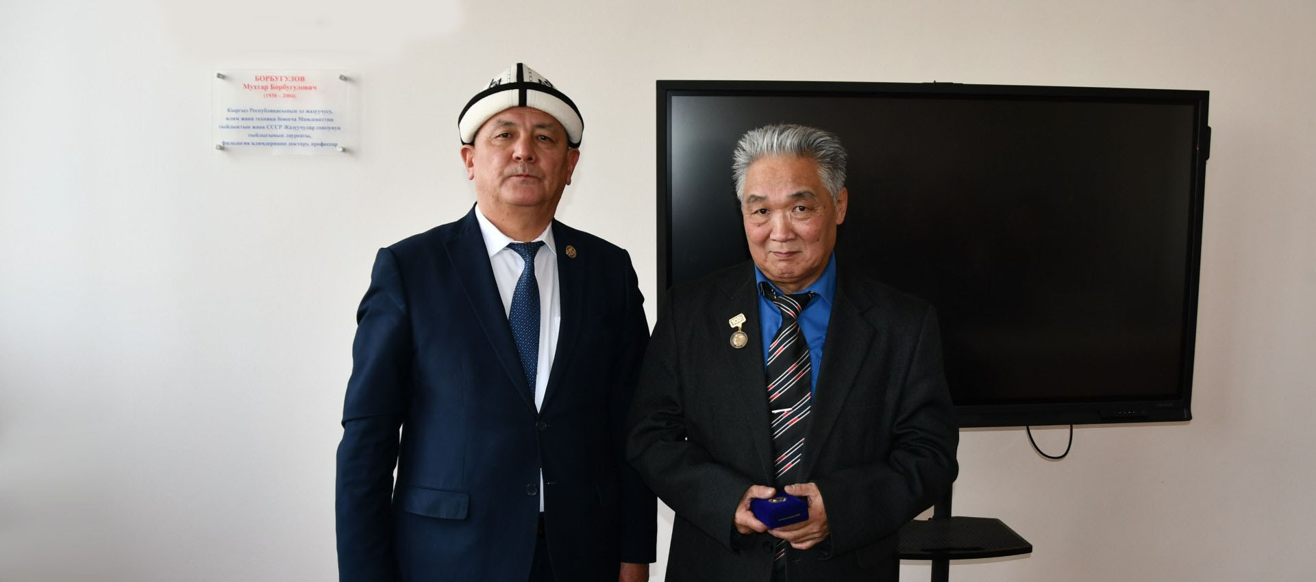 “100 жылдыкка – 100 кабинет” демилгесинин алкагында ачылган “Профессор Мухтар Борбугулов атындагы адабият кабинети” деп аталган бул билим уясынын ачылуу аземине университеттин ректору, проф. Д.Т.Чонтоев катышып, келген меймандарга, студенттерге проф. Мухтар Борбугулов агайдын окуу жайыбыздын басып өткөн жолунда сиңирген эмгегине жогору баа берүү менен атактуу окумуштуунун уулу Улан Мухтарович Борбугуловду “Улуттук университетке 100 жыл” медалы менен сыйлады. Андан ары сөзүн улап ректор окуу жайда аткарылып жаткан иштер тууралуу кеңири сөз салып берди.