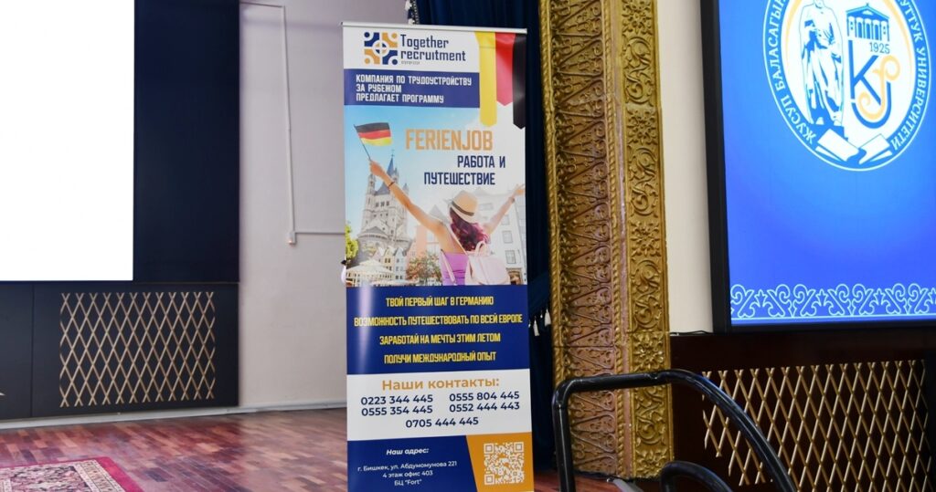 2025-жылдын 4-ноябрында Together Recruitment компаниясынын өкүлдөрү Кыргыз улуттук университеттин студенттерине Германияга жумушка орношуу боюнча лекция өткөрүштү. Жаштар саясаты жана спорт боюнча департаментинин колдоосу менен өткөрүлгөн сабактын жүрүшүндө студенттерге төмөнкү багыттар боюнча кеңири маалымат берилди: