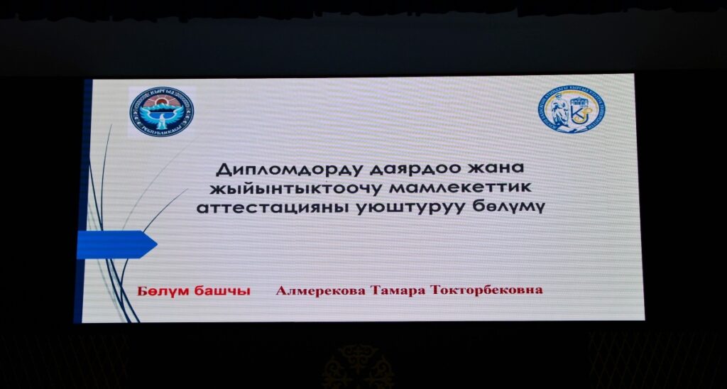 Отурумдун башында ал жалпы жамаатка бүгүн Улуттук илимдер академиясында “Президент Садыр Жапаров – жаңы Кыргызстандын жаратманы” аттуу китептин бет ачары болгонун кабарлап, анын КУУга берилген нускалары университеттин китепканасына коюлаарын билдирди жана Менеджмент жана бизнес институтутун доценти Фатима Насыровага Улуттук статистика комитетинин «Статистиканын отличниги» төш белгисин тапшырды.