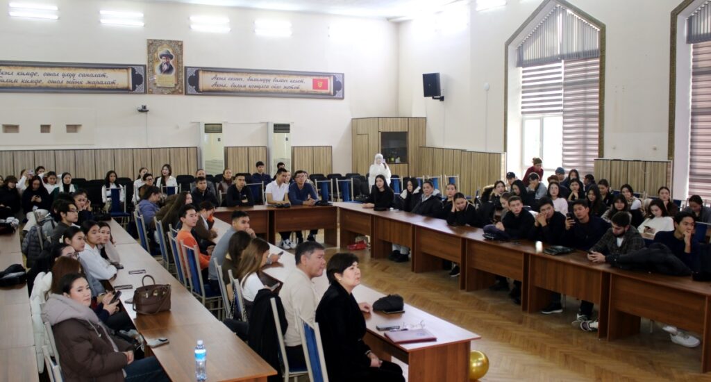 Адабий кечеге КЕФтин «Бизнести башкаруу» программасынын 1-курсунун студенттери активдүү катышып, чыгармалар, көркөм окуу жана автордук презентациялар аркылуу Айтматовдун айткандарынын бүгүнкү күнгө болгон байланышын өз көз карашы менен чагылдырды.