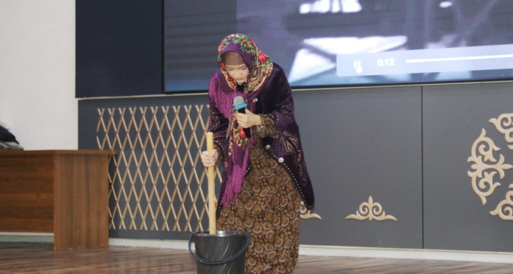 Иш-чарага окутуучулар, жогорку курстун студенттери келди. Аягында КЕФтин деканы Медина Нукеева сөз сүйлөдү.