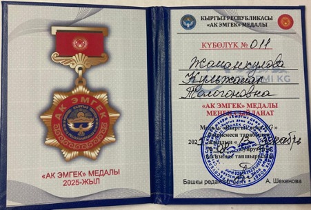Аталган бирикме тарабынан сыйлыктарды тапшыруу аземинде кыргыз тил илими кафедрасынын профессору Гүлжамал Жаманкулова 2025-жылдагы илимий жана педагогикалык ишмердүүлүгүндөгү ийгиликтери үчүн «Ак эмгек» медалы менен сыйланды.