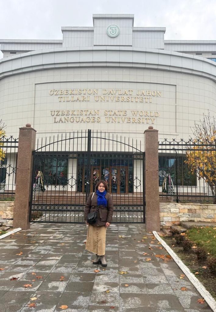 2025-жылдын 15–17-декабрь күндөрү Чет тилдер институтунун англистика кафедрасынын башчысы Асель МамытоваТашкент шаарындагы Өзбек мамлекеттик дүйнөлүк тилдер университетине кызматтык иш-сапар менен барды.