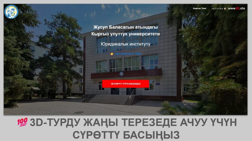 - КУУнун окуу имараттарын заманбап, иммерсивдүү виртуалдык турда изилдөөгө мүмкүндүк берет;