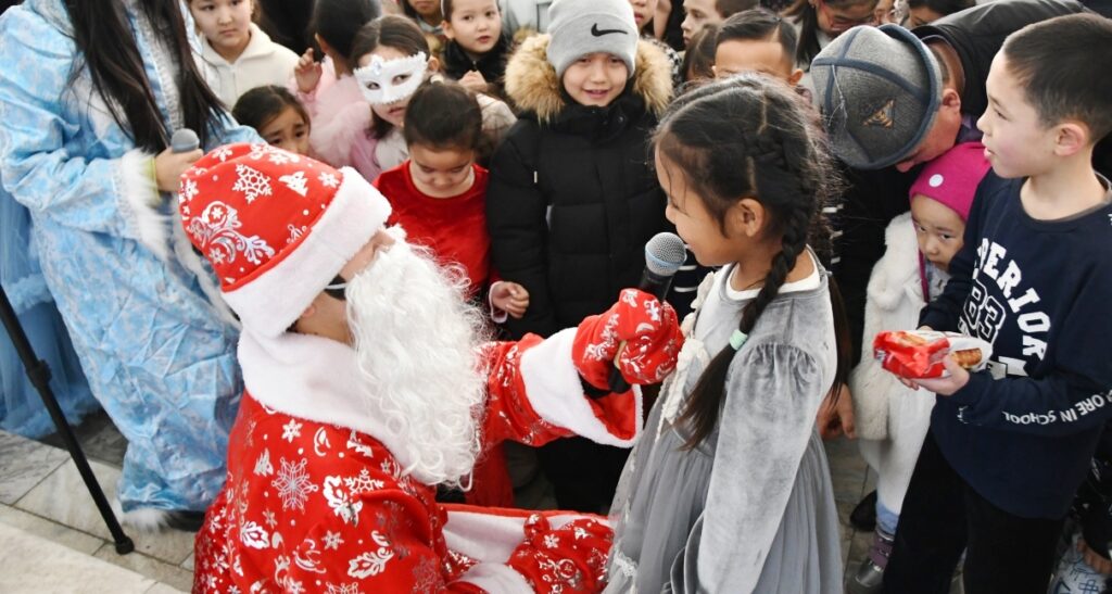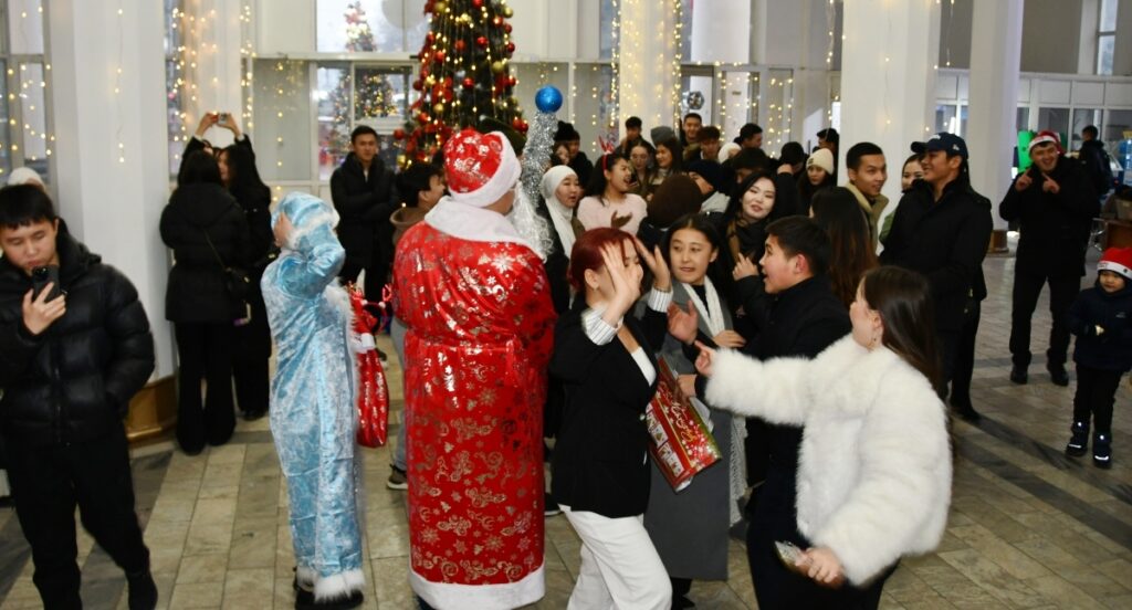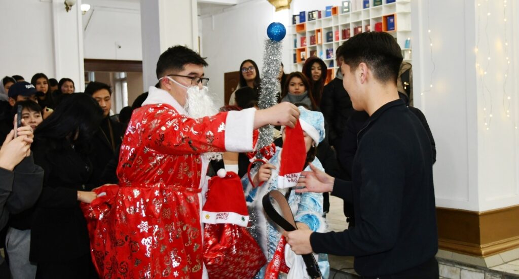 Майрамдык кечеде студенттер үчүн кызыктуу оюндар, жарыштар жана музыкалык көрсөтүүлөр өткөрүлүп, иш-чаранын көркүн ачып, кооздугун жогорулаткан Аяз Ата жана Аяз Кыз өздөрүнүн белек-бекчектерин беришти.