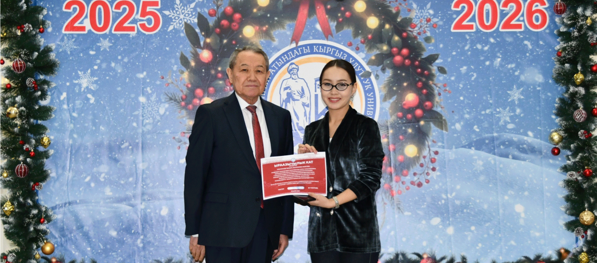 2025-жылдын 26-декабрында башкы имараттын фойесинде студенттер үчүн «Ректордун жаңы жылдык балатысы» аттуу майрамдык иш-чара өткөрүлдү. Салтанаттуу кечени мамлекетик тил жана тил саясаты боюнча проректор Назаркул Ишекеев ачып, студенттерге ийгиликтерди каалап, келечекте чон жетишкендиктерге жетүүнү тилек кылды жана активдүү студенттердин ата-энелерине ыраазычылык каттарын тапшырды.