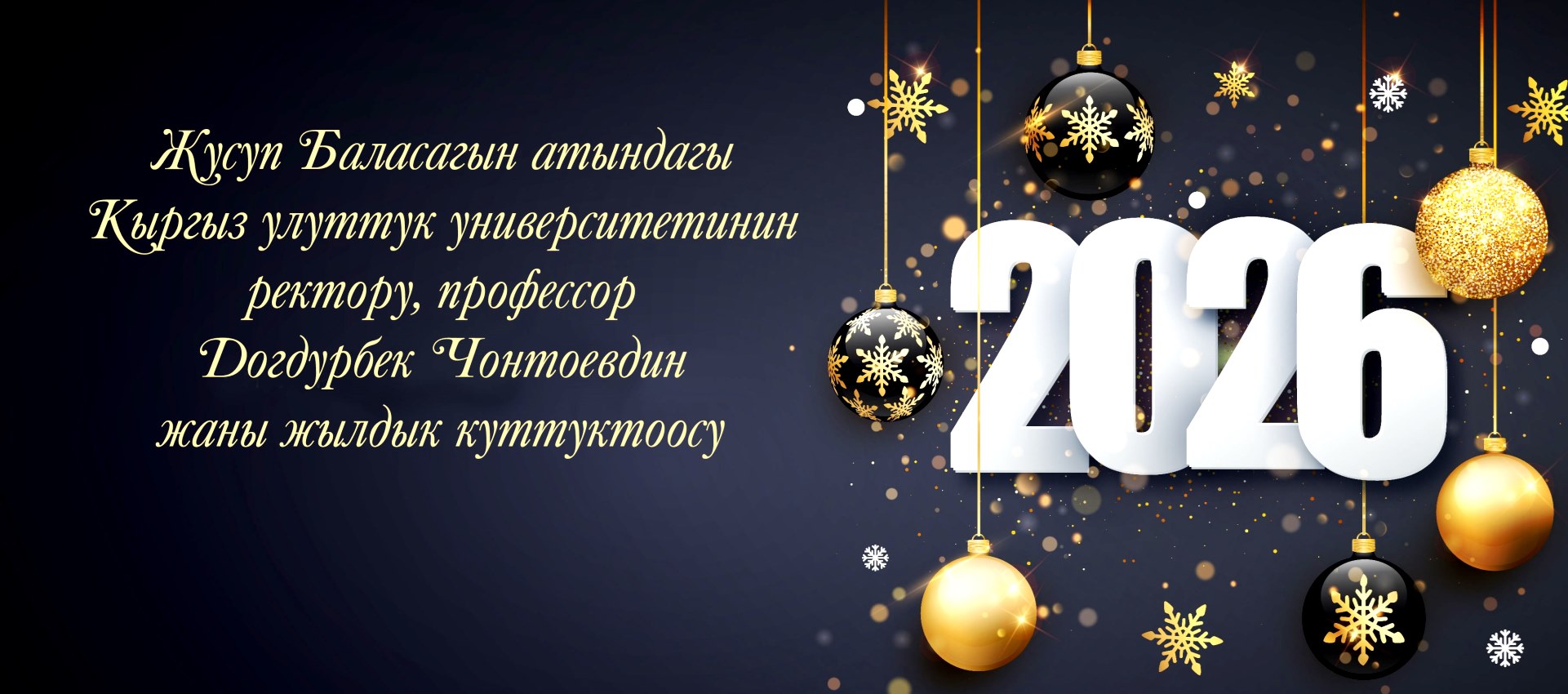 Дагы бир жолу Жаңы жылыңыздар менен куттуктаймын. Сүйүктүү университетибиздин ар бир кызматкерине, студентине, магистрине, аспирантына чың ден соолук, бакубат турмуш жана ийгиликтерди каалаймын. Жаңы жылда асыл максаттар, аруу тилектердин баары ишке ашсын. 2026-жыл ар бирибиз үчүн жакшылыктардын жылы болсун!