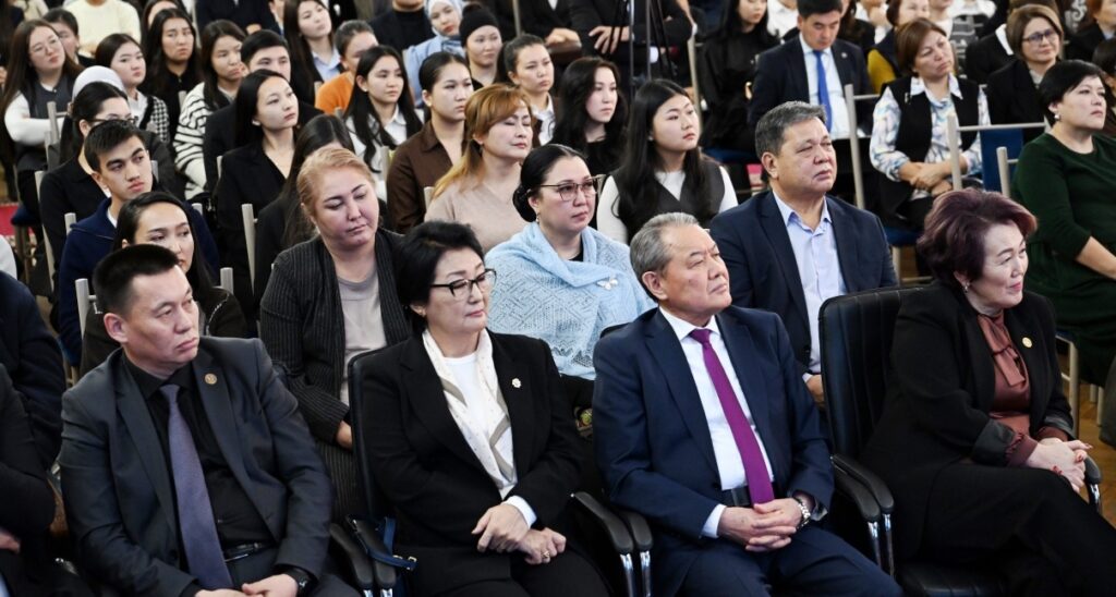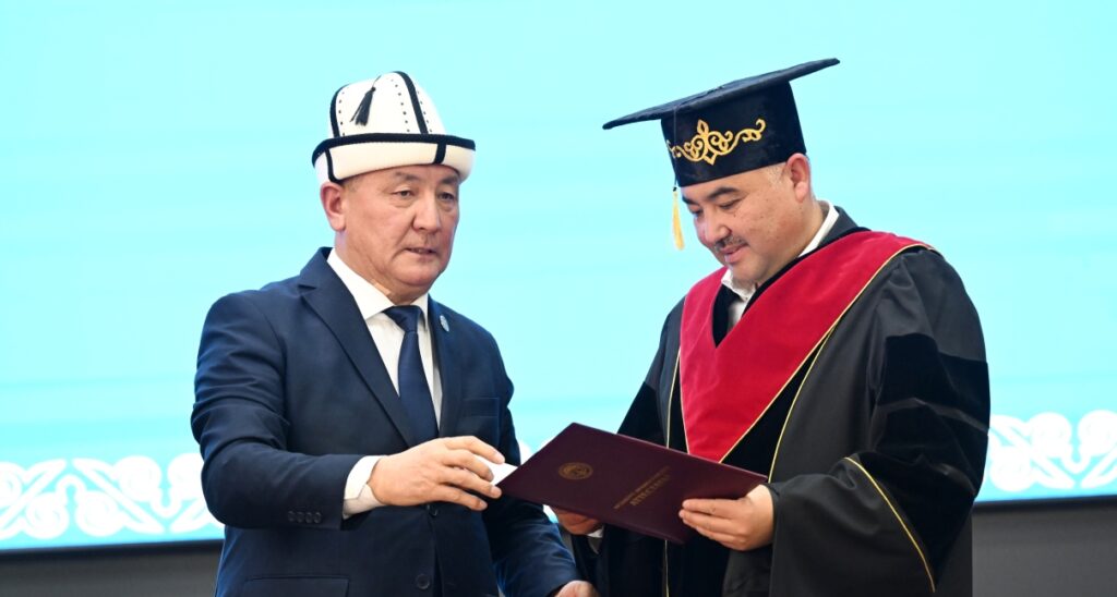 Университеттин ректору Догдурбек Чонтоев 100 жылдык тарыхка ээ окуу жайды өнүктүрүү багытындагы бардык демилгени Төрага Нурланбек Тургунбек уулу жигердүү колдоп келе жатканын белгилеп, көрсөтүлгөн жардамдар билим берүүнүн сапатын көтөрүүдө өзгөчө мааниге ээ экенин кошумчалады. «Ага ылайык, окумуштуулар кеңешинин чечими менен Төрага Нурланбек Тургунбек уулуна «Жусуп Баласагын атындагы Кыргыз улуттук университетинин ардактуу профессору» наамын ыйгарып жатабыз», – деди Догдурбек Чонтоев. Ошондой эле Төрагага окуу жайдын маарекелик медалын ыйгарды.