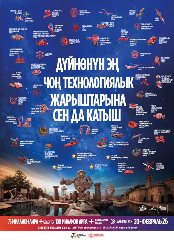 Ар жылы жаңыланып турган категориялары менен көңүлдү бурган TEKNOFEST, дүйнөдөгү эң чоң сыйлыкка ээ технологиялык жарыштарга быйыл да кожоюндук кылат. 2026-жылы 52 жарыш жана 127 кошумча категория боюнча өткөрүлүүчү TEKNOFEST технологиялык жарыштарына каттоо 20-февралга чейин уланат.