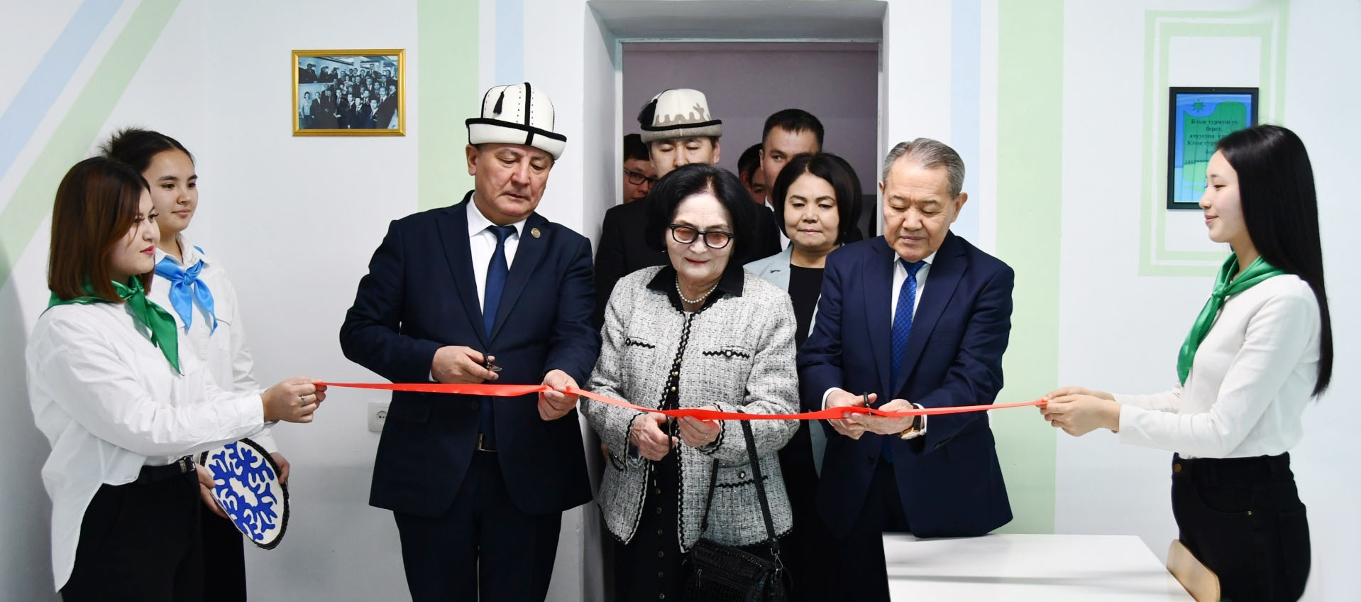 Салтанаттуу иш-чарага КУУнун ректору, профессор Догдурбек Чонтоев катышып, бул кабинет кыргыз элинин бай адабий мурасын терең өздөштүрүүгө шарт түзүп, студенттердин көркөм ой жүгүртүүсүн, тил маданиятын өнүктүрүүгө чоң мүмкүнчүлүк түзөөрүн, студенттердин сабакка болгон кызыгуусун арттырып, улуттук адабиятка болгон сүйүүсүн бекемдээрин белгилеп, бул саамалыкты ишке ашырууга салым кошкон окутуучуларга, демөөрчүлөргө жана уюштуруучуларга терең ыраазычылыгын билдирди. Сөзүнүн соңунда ректор аталган бөлүмдүн башчысы Мирбек Шарабидиновго Чынгыз Айтматовдун чыгармаларынын толук жыйнагы менен Улуттук университеттин 100 жылдык мааракесине карата чыгарылган «Жусуп Баласагын» энциклопедиясынын 5 томдугун жаңы кабинетке белек катары тапшырды.