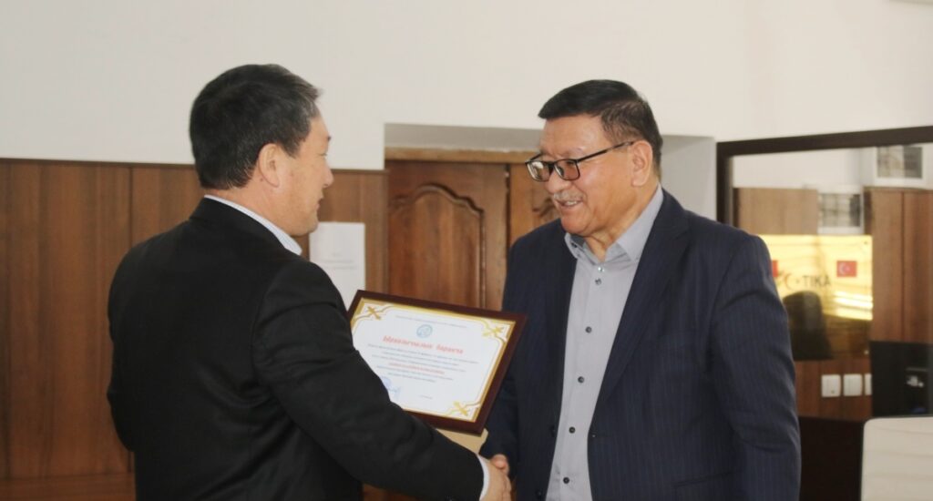 Семинардын соңунда котормочу адистигинде эмгектенип жаткан жалпы эмгек жамаатына жана котормо таануу адистигинде окуп, билим алып жаткан жаштарга кызыктуу лекция өтүп бергендиги үчүн Абдиев Таалай Камбаровичке Жусуп Баласагын атындагы КУУнун ректору, проф. Д.Т.Чонтоевдин атынан ыраазычылык кат тапшырылды.