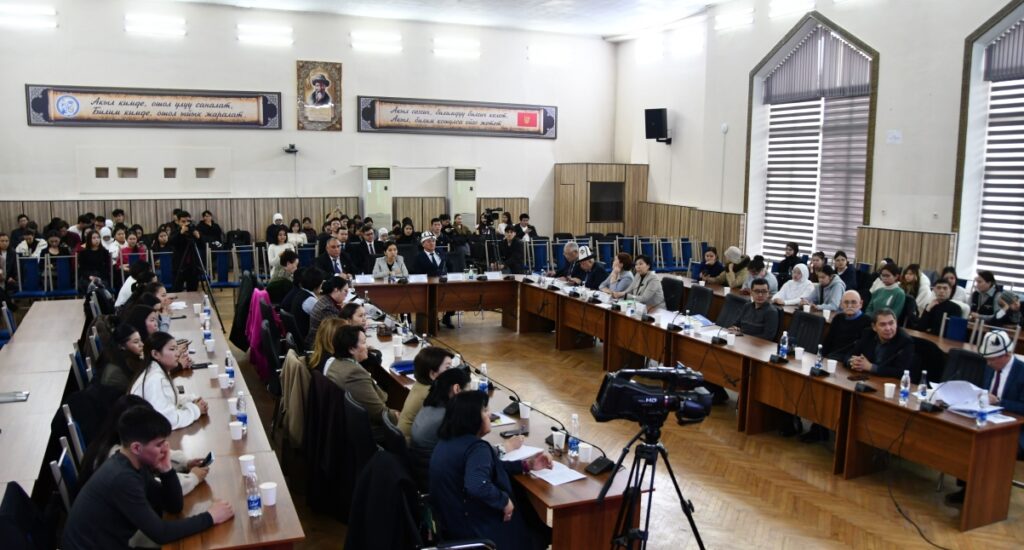 «Улуттук дем — дүйнөлүк бийиктик» уңгужолун ишке ашыруу жана Эне тилдин бүткүл дүйнөлүк күнүнө арналган иш-чаранын башында мамлекеттик тил жана тил саясаты боюнча проректор Назаркул Ишекеев кириш сөз сүйлөп, семинарды ачып берүү үчүн сөз кезегин КУУнун ректору, профессор Догдурбек Чонтоевге берди.