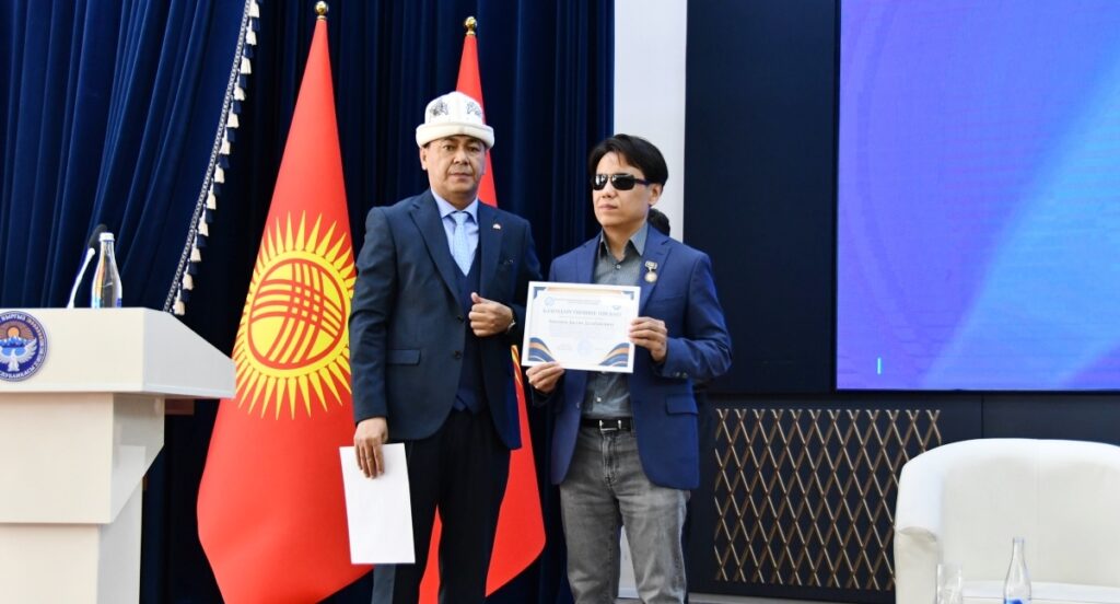 Чет тилдер институтунун директору Кенжебай Уметов депутатка институттун студенттерин колдоого кошкон салымы, өзгөчө мүмкүнчүлүгү чектелген студенттерге жыл сайын стипендия тапшыруу демилгеси үчүн өзүнүн атынан ыраазычылык кат тапшырды.