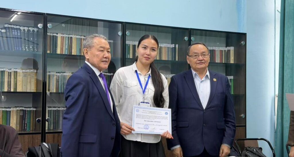 Профессор Назаркул Ишекеев байгелүү орундарга ээ болгон командаларды жана студенттерди ардак громаталар жана дипломдор менен сыйлады.