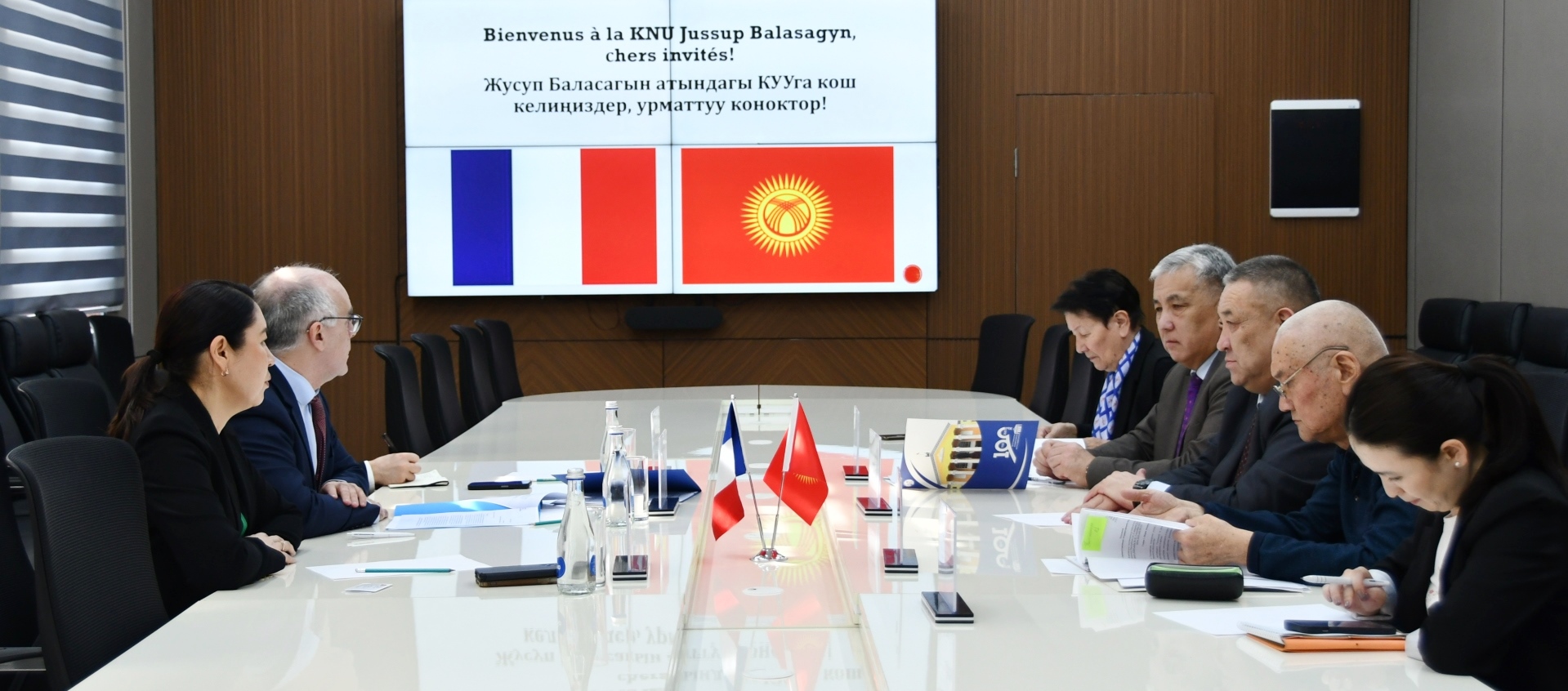2026-жылдын 18-февралында Жусуп Баласагын атындагы Кыргыз улуттук университетинин биринчи проректору – окуу иштери боюнча проректор Алайбек Шамшиев менен Франциянын Кыргызстандагы Элчиси Николя Файдын жолугушуусу болуп өттү.