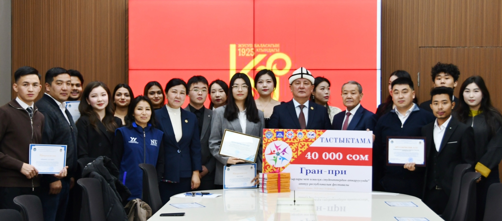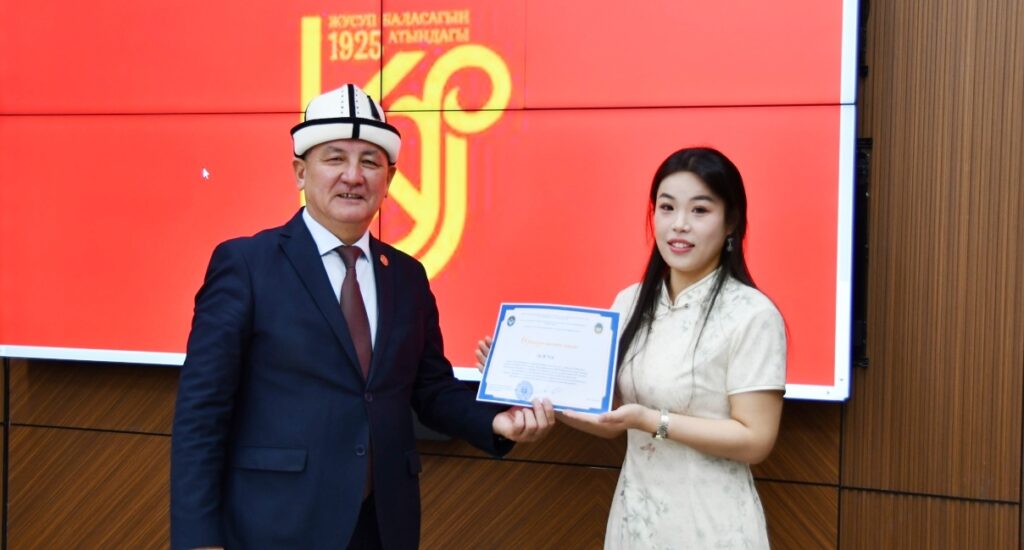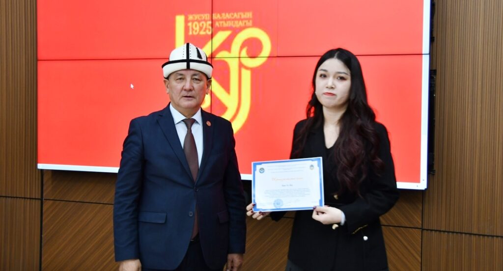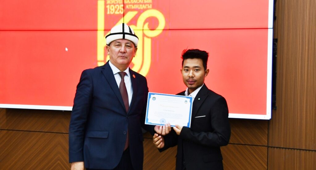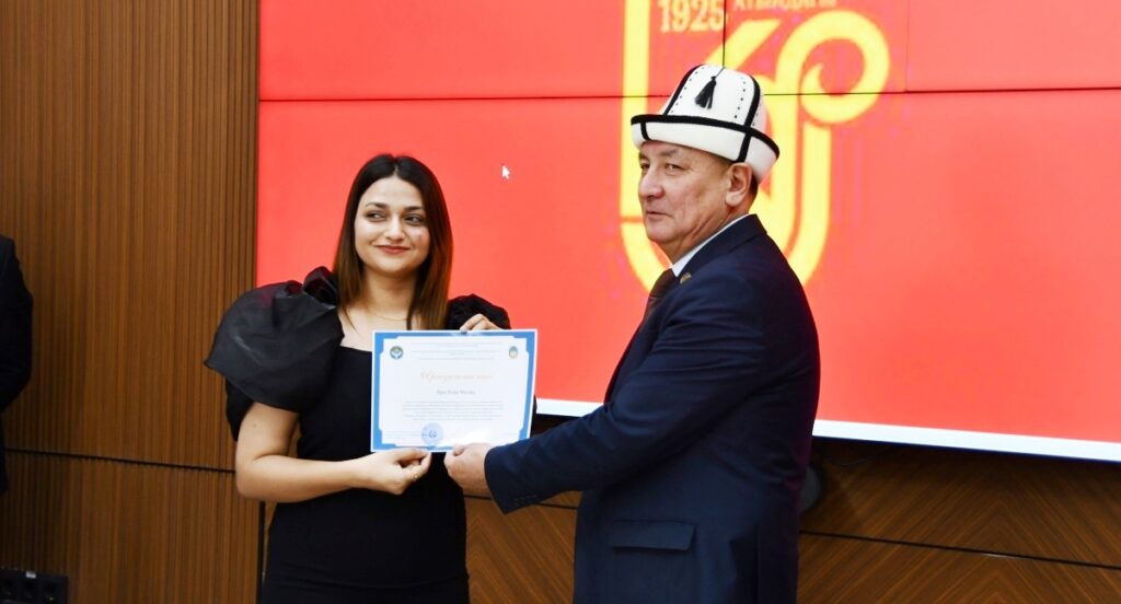Андан ары ректор баш байгеге татыган чет өлкөлүк студенттердин ар бирине ыраазычылык кат тапшырды. Ректор ар бир студентке өз-өзүнчө токтолуп, алардын эмгегин жогору баалап, чыгармачылык ийгиликтерди жана студенттердин сахна маданиятын, тилге болгон урмат-сыйын жана чыгармачылык даярдыгын өзгөчө белгиледи жана мындан ары да эл аралык жана республикалык деңгээлдеги иш-чараларга активдүү катышууга чакырды. Ректор университет ар дайым таланттуу жана демилгелүү жаштарды колдоого даяр экенин кошумчалады.
