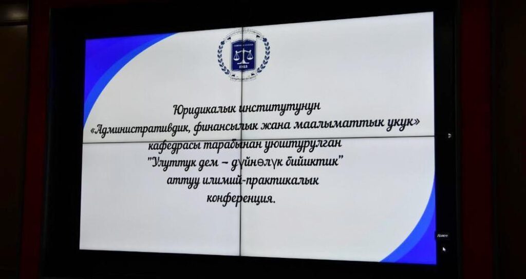 2026-жылдын 5-мартында Юридикалык институттун административдик, финансылык жана маалымат укугу кафедрасы тарабынан Кыргыз Республикасынын Президентинин 2024-жылдын 18-декабрындагы «Улуттук дем — дүйнөлүк бийиктик» уңгу жолу жөнүндөгү жарлыгын ишке ашыруу алкагында «Улуттук дем – дүйнөлүк бийиктик» аталышындагы илимий-практикалык конференция өткөрүлдү.