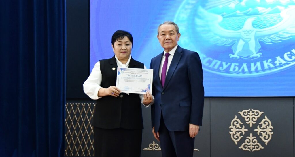 Жыйындын модераторлук милдетин мамлекеттик тил жана тил саясаты боюнча проректор Назаркул Ишекеев аткарды.