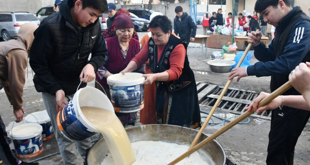 2026-жылдын 18-мартында Жусуп Баласагын атындагы Кыргыз улуттук университетинде Нооруз майрамына арналган иш-чаралар башталды. Ректор Догдурбек Чонтоев баштаган жетекчилер, кызматкерлер жана студенттер салттуу тамакка айланган сүмөлөк бышыруу процессине катышып, тилек айтышып, жөрөлгөлөр аткарылды.