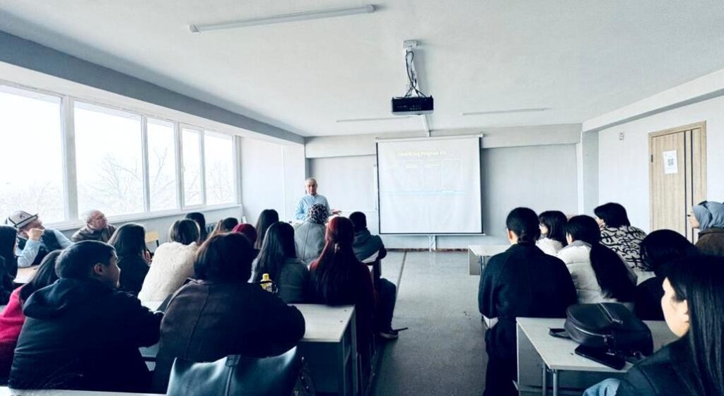 2026-жылдын 17-мартында Борбордук Азия университетинин кооперативдик билим берүү программасынын жетекчиси, Миннесота университетинин магистри жана Чет тилдер институтунун бүтүрүүчүсү Каримов Мырзарахман Мырзакаримович Чет тилдер институтунун студенттери үчүн конок лекция өткөрдү.
