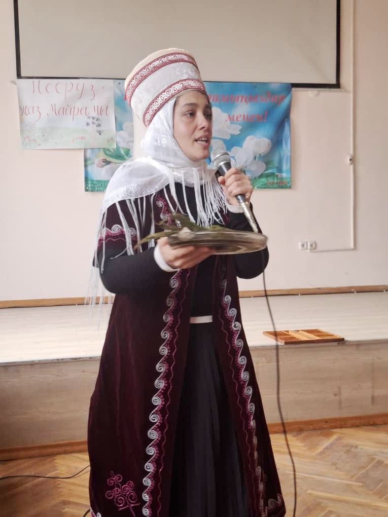 Майрамдык салтанат Умай эненин алас айтуусу менен башталды. Угуучулар “Жаз” мезгили жөнүндө кыргызча жана орусча ырларды, макал-лакаптарды, жаңылмачтарды, табышмактарды айтышты. Япониядан келген тил үйрөнүүчү кыргыз комузун чертип, ырдап берди. Кореядан жана Түркиядан келген студенттер белгилүү кыргыз акын-жазуучуларынын ырларын көркөм айтып беришти. Кытайдан келген тил үйрөнүүчүлөр кыргыз бийин жогорку деңгээлде бийлеп беришти. Дагы студенттер мукам үн менен кыргызча, япончо, корейче обондуу ырларды ырдап беришти.