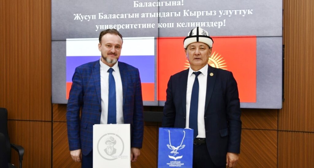 2026-жылдын 23-мартында Жусуп Баласагын атындагы Кыргыз улуттук университетинин ректору, профессор Догдурбек Чонтоев Алтай мамлекеттик университетинин тарых жана эл аралык мамилелер институтутунун директору Иван Назаров менен жолугушту.
