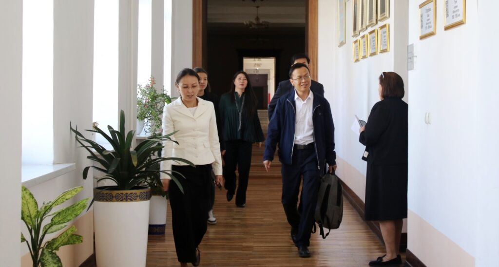 Жолугушууга о.э. КУУнун Эл аралык кызматташтык жана байланыштар департаментинин директору Бакыт Келдибеков, Илим жана илимий-аналитикалык ишмердүүлүк бөлүмүнүн башчысы Алтынбек Качкын уулу жана Конфуций институтунун директору Жылдыз Усенбаева катышты.