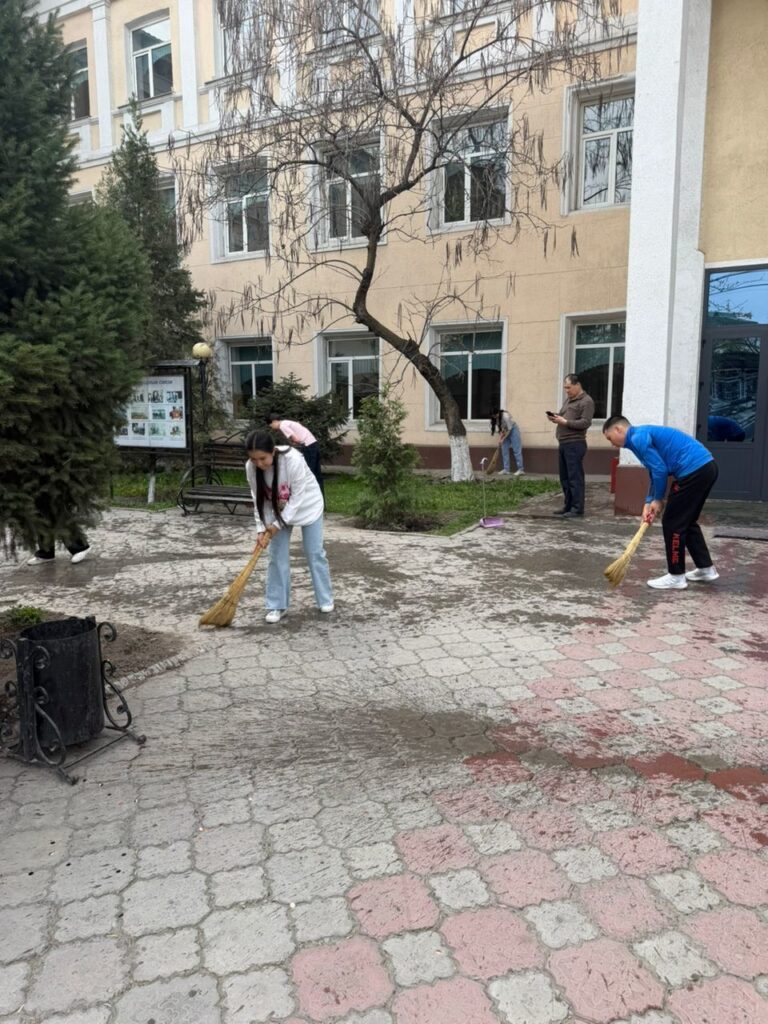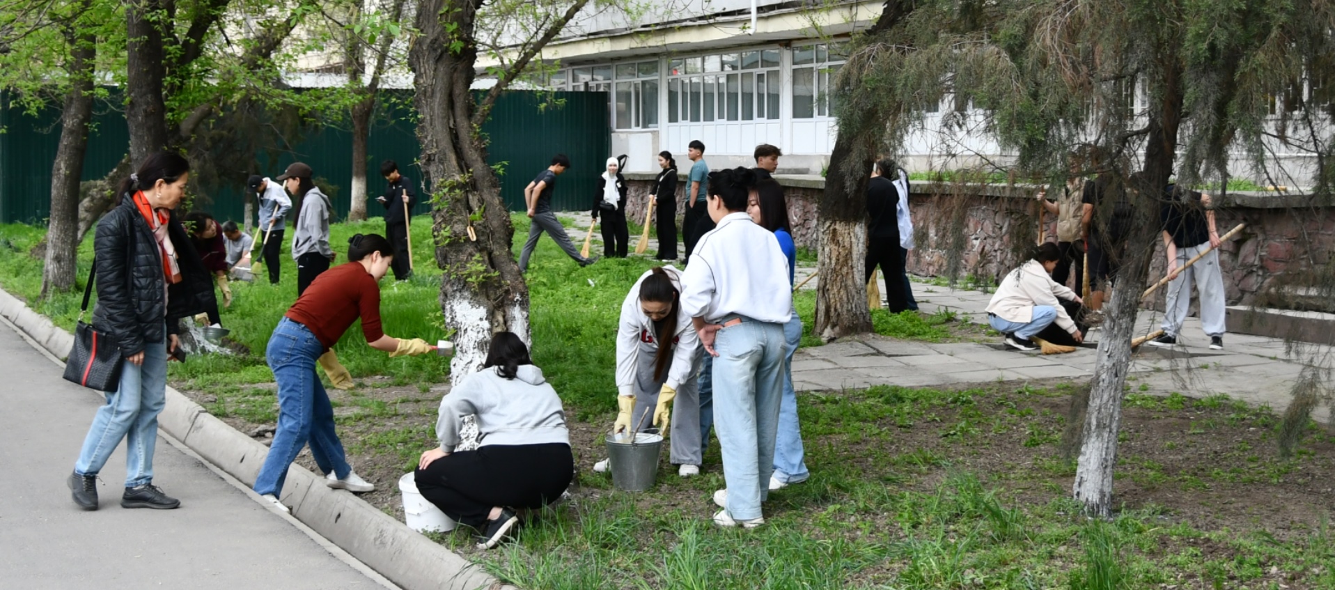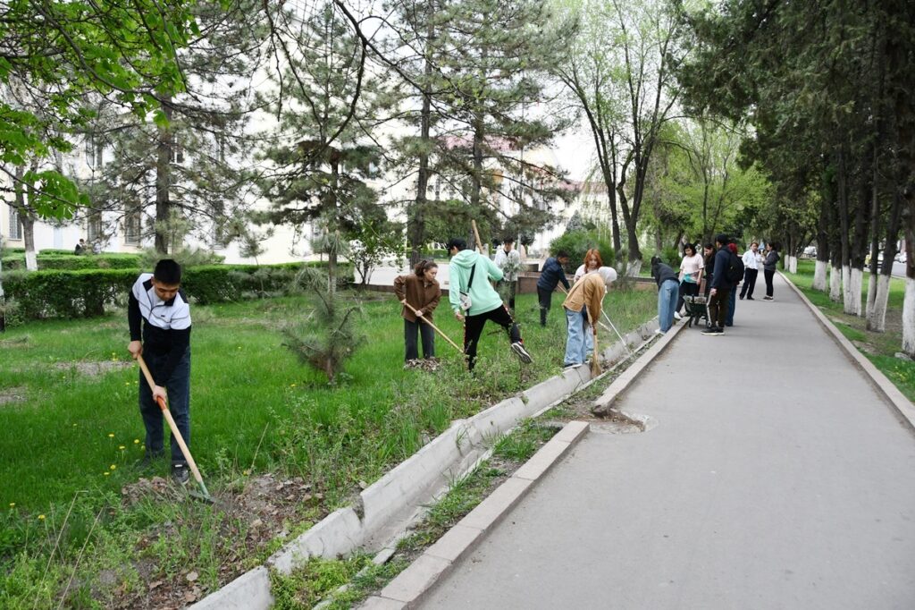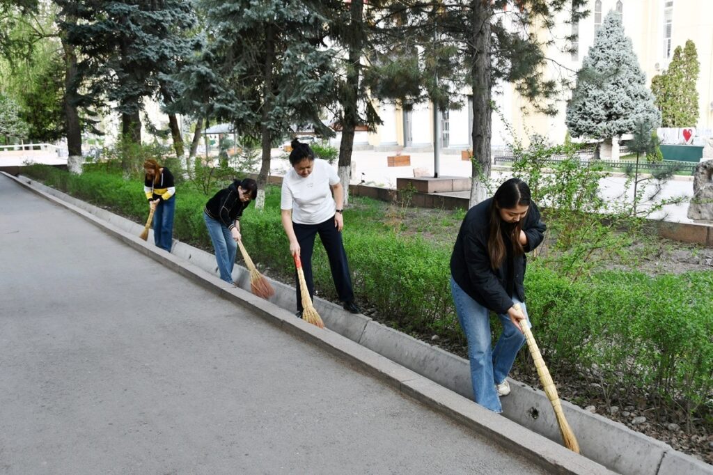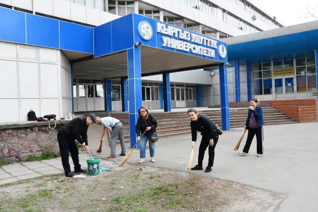 Кыргыз Республикасынын Илим, билим берүү жана инновациялар министрлигинин 2026-жылдын 10-мартындагы №137 буйругун аткаруу максатында 2026-жылдын 4-апрель күнү Улуттук университеттин студенттери менен кызматкерлери ишембиликке чыгышып, өздөрүнө бекитилген участоктордогу жер тилкелеринде, арыктарда жана тротуарларда санитардык тазалоо иштерин жүргүзүп, бак-дарактарды акташты.