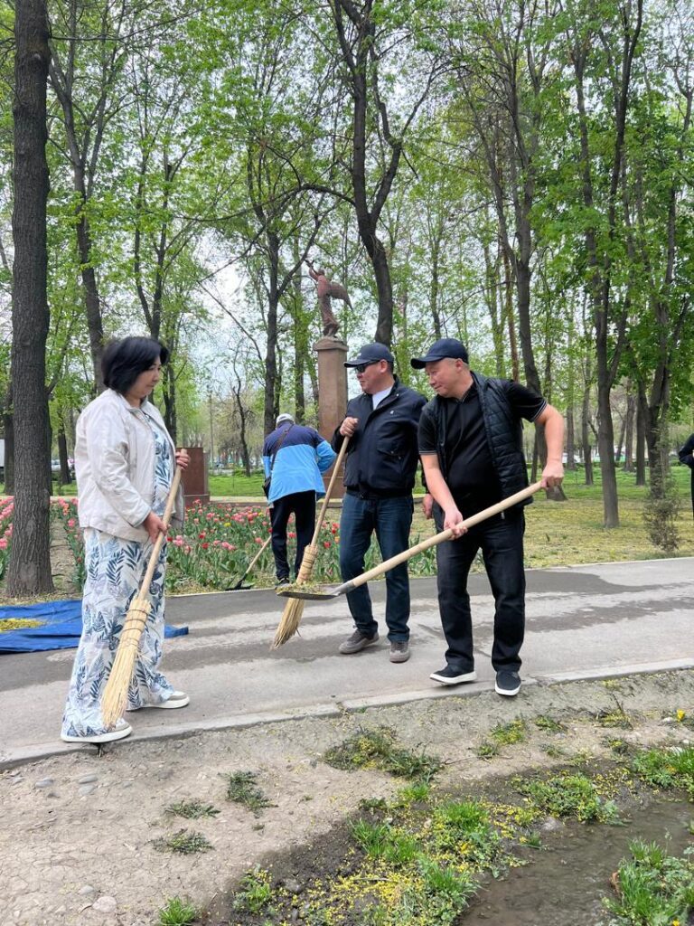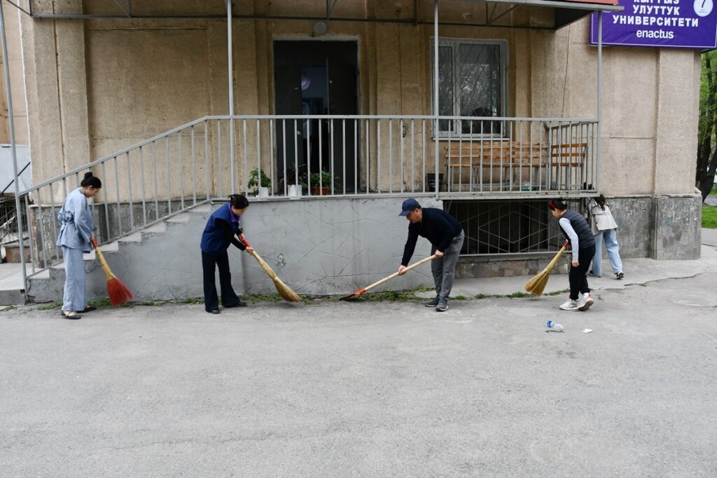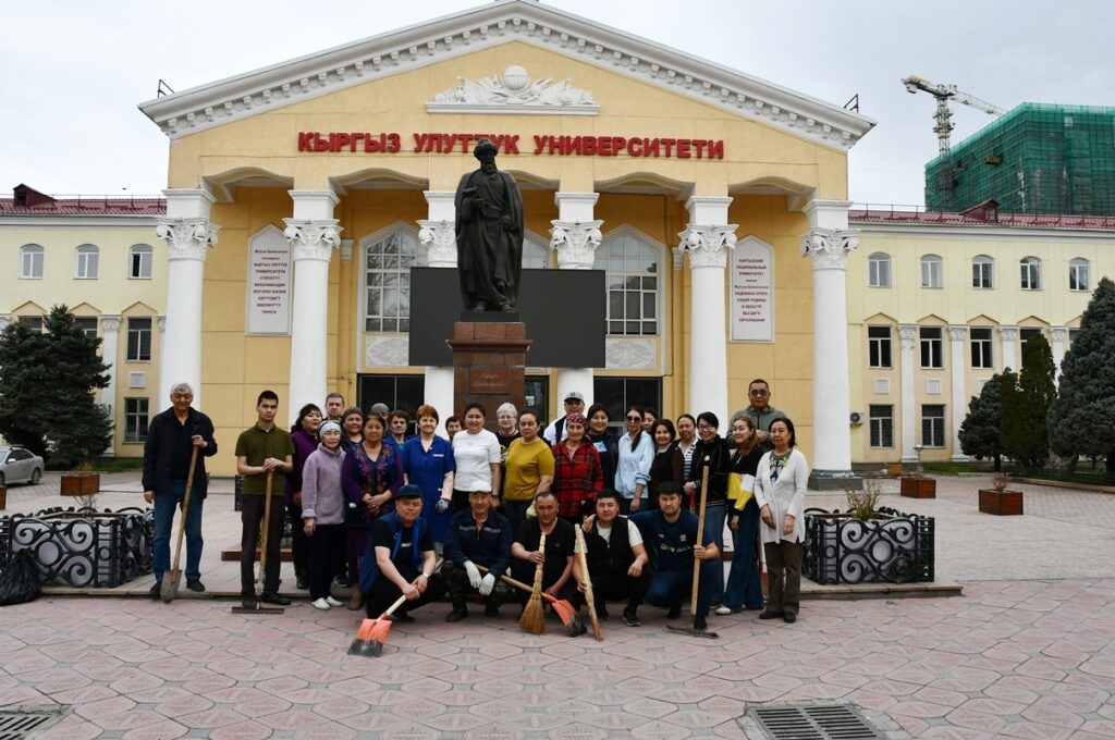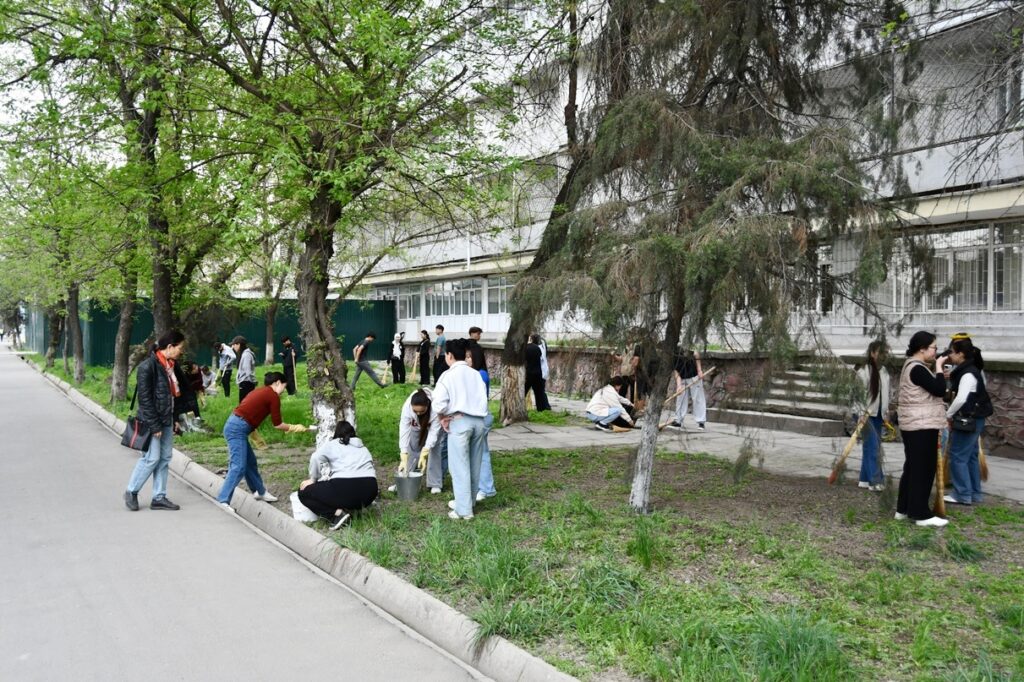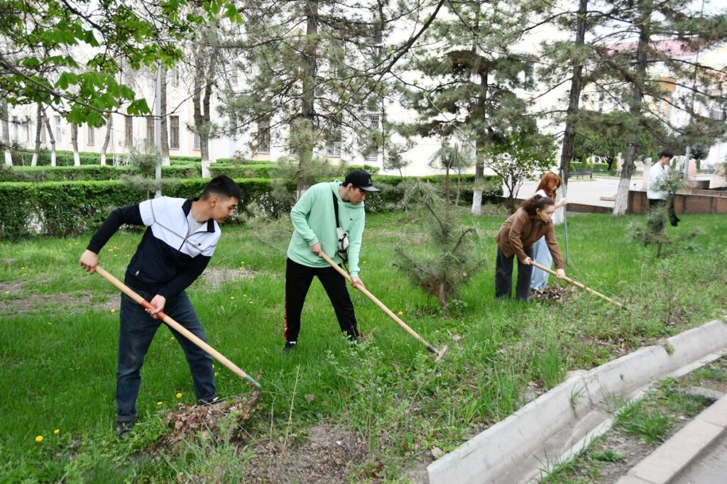 Кыргыз Республикасынын Илим, билим берүү жана инновациялар министрлигинин 2026-жылдын 10-мартындагы №137 буйругун аткаруу максатында 2026-жылдын 4-апрель күнү Улуттук университеттин студенттери менен кызматкерлери ишембиликке чыгышып, өздөрүнө бекитилген участоктордогу жер тилкелеринде, арыктарда жана тротуарларда санитардык тазалоо иштерин жүргүзүп, бак-дарактарды акташты.