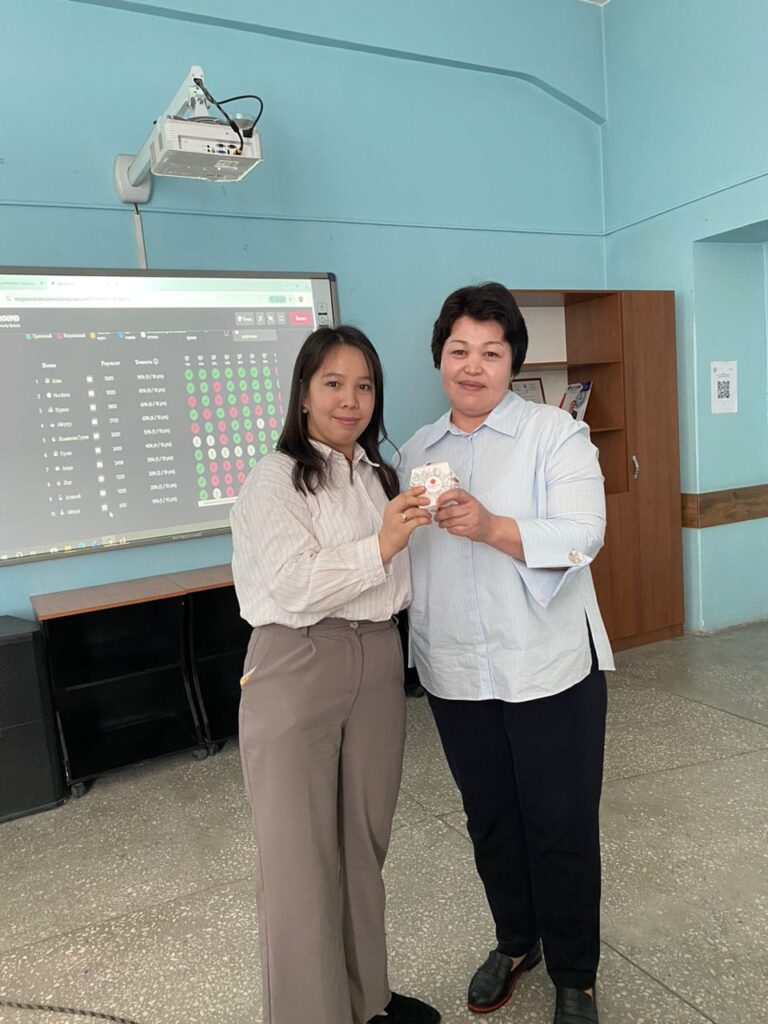 • Квиз-тест: катышуучулар смартфондору аркылуу ЖИ боюнча билимдерин текшерип, жеңүүчүлөргө эстелик белектер тапшырылды.