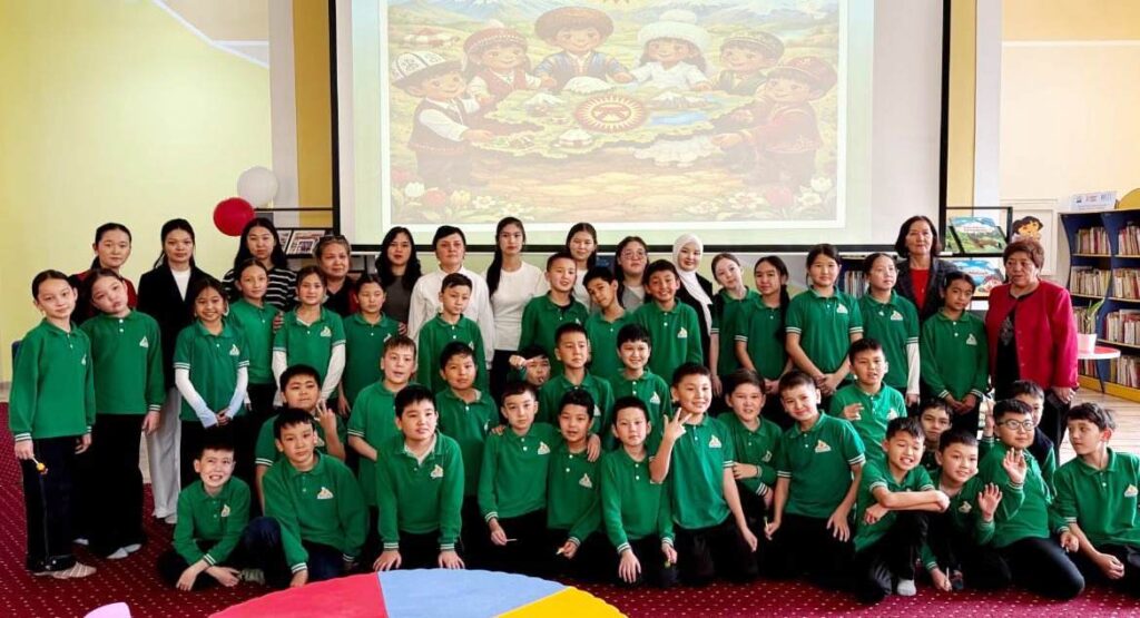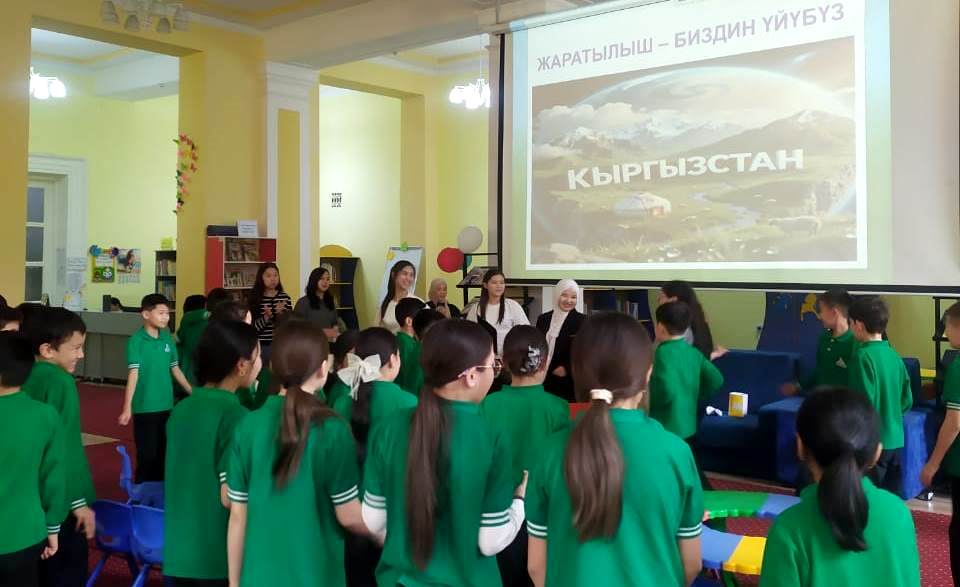 Иш-чаранын алкагында студенттер «Балалык» бөлүмүнүн башчысы Алиева Р. менен таанышып, китепкананын ишмердүүлүгү боюнча маалымат алышты. Андан соң, китепканага экскурсияга келген «Креатив-Таалим» билим берүү комплексинин 3–4-класстарынын окуучулары үчүн “Жаратылыш – биздин үйүбүз” аттуу интерактивдүү тренинг өткөрүштү.