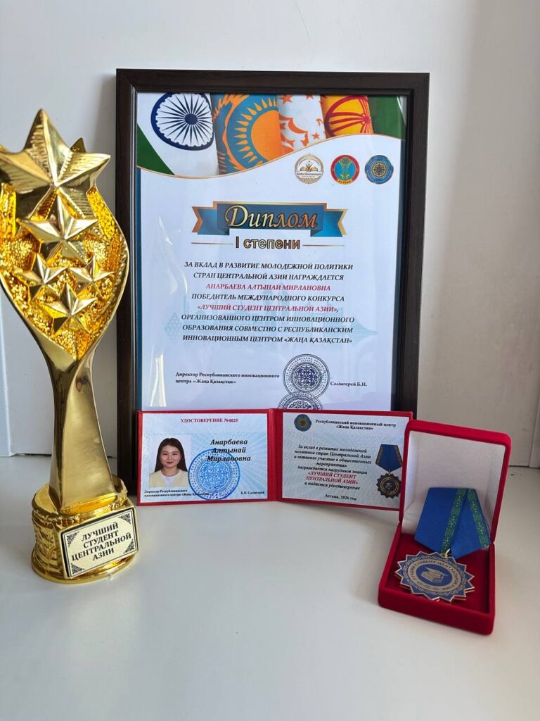 Математика жана информатика институтунун жетекчилиги 1-курстун студенти Анарбаева Алтынайды Астана шаарында өткөн Эл аралык конкурста “Борбордук Азиянын мыкты студенти — 2026” наамына ээ болушу менен чын дилден кызуу куттуктап, ага чың ден соолук, мындан ары да окууларында албан-албан ийгиликтердин жаралышын каалайт.