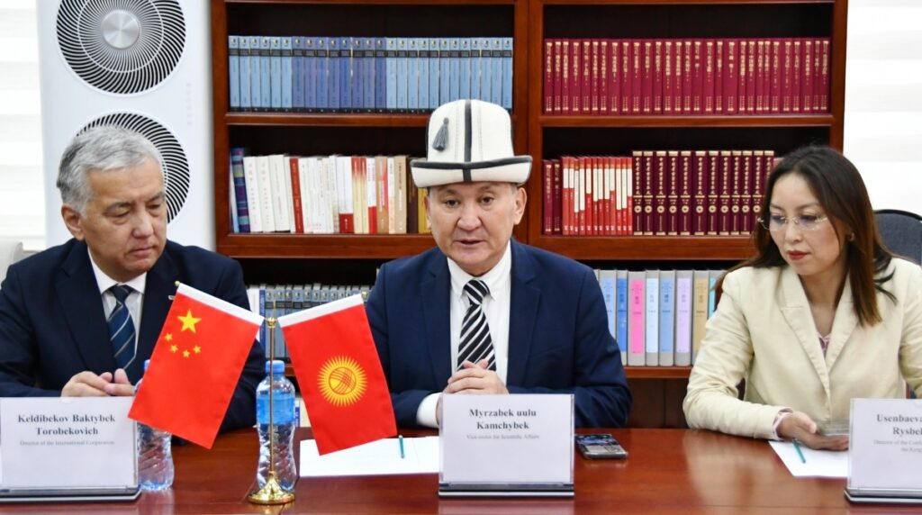 Делегация мүчөлөрүн илимий иштер боюнча проректор Мырзабек Камчыбек уул кабыл алып, уулу окуу жай тууралуу кыскача маалымат берди жана Улуттук университет ар тараптуу кызматташууга даяр экенин белгиледи.