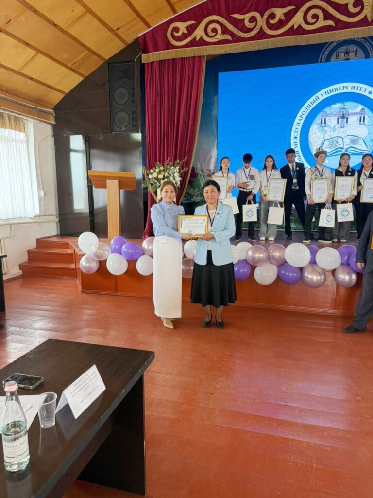 - 2-орун: Кыргыз-европа факультетинин 1-курс студенти Жоробекова Салима (2-даражалагы диплом жана акчалай сыйлык);