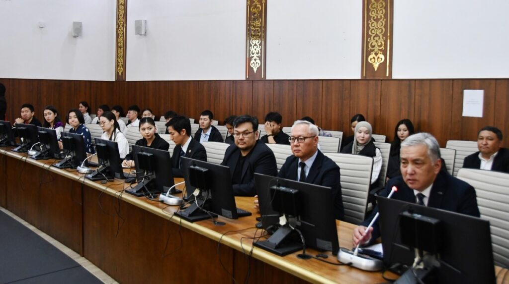 Алгач ал Улуттук университеттин ректору, профессор Догдурбек Чонтоев баштаган КУУнун жамааты менен жолугушту.